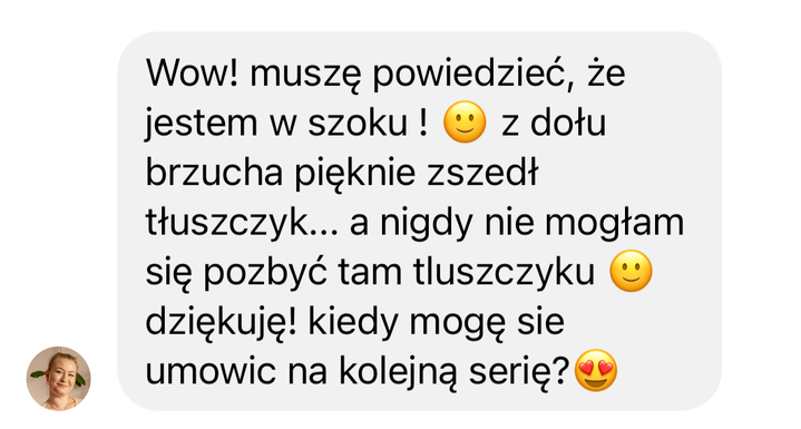 Nie mogę uwierzyć, jak skuteczny jest zabieg endermologii! Po kilku sesjach zauważyłam znaczącą redukcję tkanki tłuszczowej i cellulitu, co sprawiło, że moja skóra wygląda o wiele lepiej. Ale to nie wszystko - dzięki tym rezultatom czuję się bardziej pewna siebie i gotowa na podbicie świata!